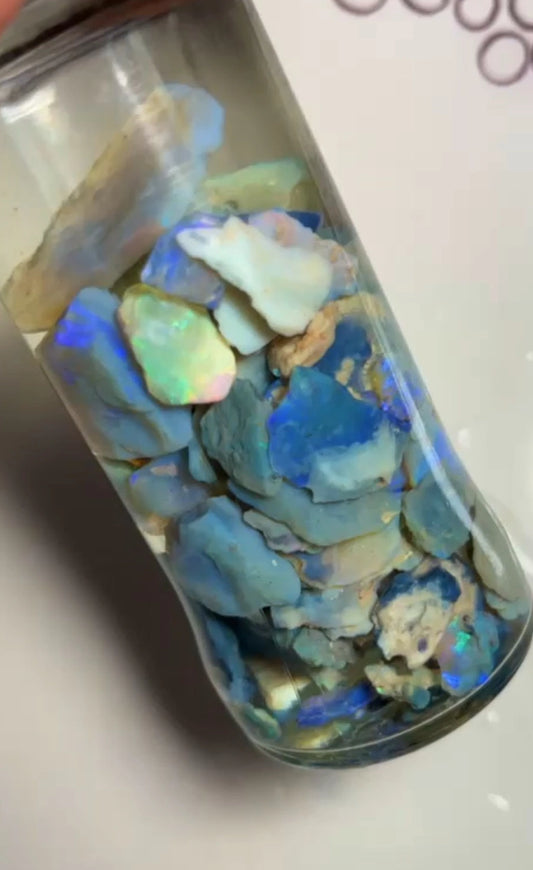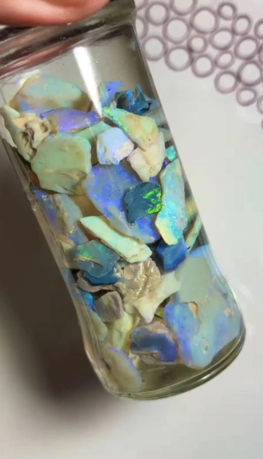 Knobby Seam & Fossil Potch & Colours 345.00cts Lightning Ridge lots colour to Gamble 23x17x5 to 8x6x3 mm Jar not included SKU#RLN013