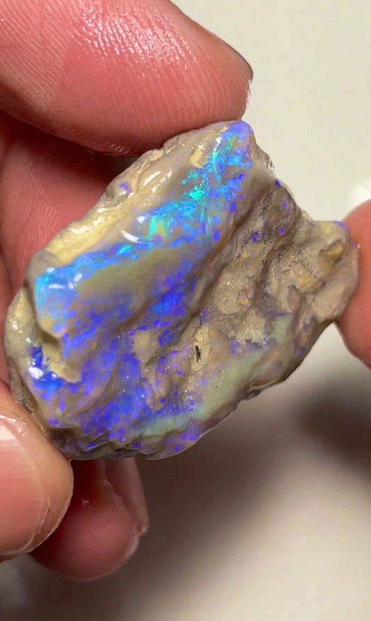 49cts Lightning Ridge Rough Opal Untouched Big Dark Crystal Seam with gorgeous Bright Blues and Greens in the bar 39x27x7mm 3377