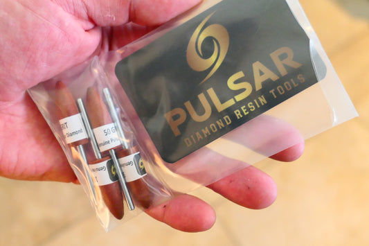 PULSAR DIAMOND™ RESIN CARVING POINTS "GRIND KIT" LAPIDARY BURRS FOR DREMEL & ROTARY TOOLS 3MM SHAFT POLISH 2 x 50 Grit and 2 x 100 Grit