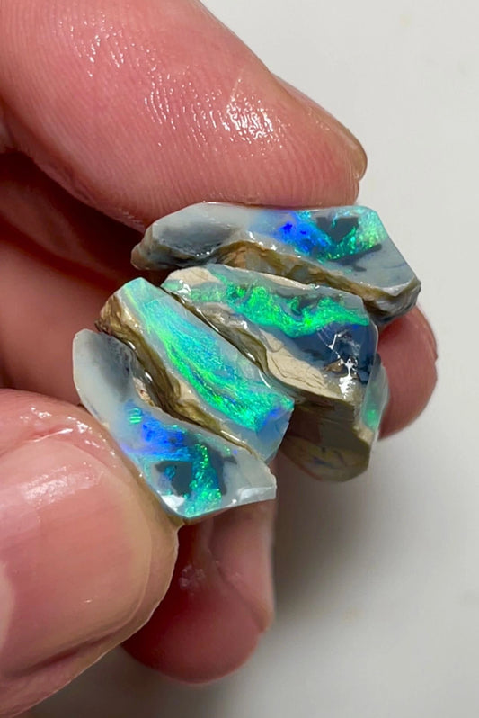 30cts Lightning Ridge Rough Opal Dark Crystal Gem Seam Splits with exotic Multifire 29x14x5 to 17x15x5 mm 9854