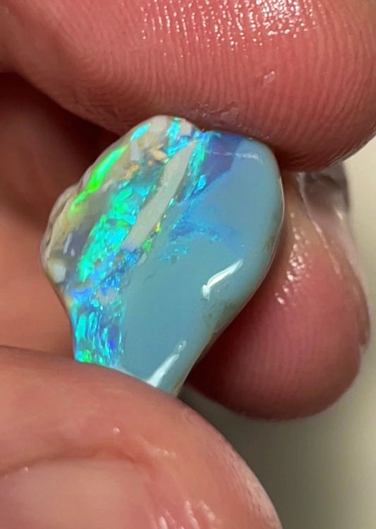 Yellow/Blue/Green dominant Very Bright Multifires 7.30cts Lightning Ridge knobby opal rub/rough 21x12x3mm SKU#RLN011