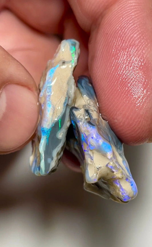 47cts Lightning Ridge Rough untouched seam opal pair showing colours 32x20x8mm & 29x25x5mm SKU#9858