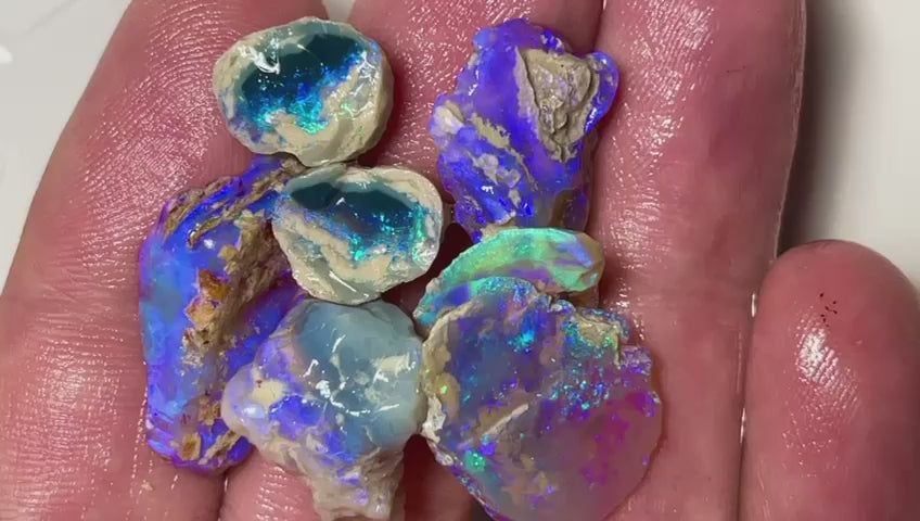 A small but powerful handful of gorgeous black and dark base opal rough from Lightning Ridge. This 44.50ct parcel features bright flashes of colour and bar potential in multiple pieces. The material ranges from early signs of structured fire to deeper stones with real cutting promise. A solid mid-range parcel for cutters looking for colour without breaking the bank.