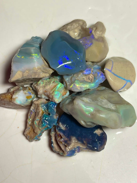 Handful of Gorgeous Black & Dark Lighning Ridge rough opal 44.50cts Bright Colourful materiel with lots of potential 24x11x7mm to 12x9x6 mm SKU#RLN005Regular price $75.00 USDRegular priceUnit price / per-