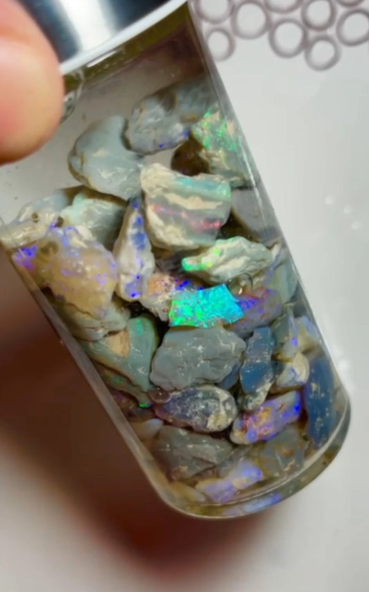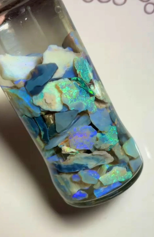 Knobby Seam & Fossil Potch & Colours 345.00cts Lightning Ridge lots colour to Gamble 23x17x5 to 8x6x3 mm Jar not included SKU#RLN013Regular price $155.00 USDRegular priceUnit price / per-